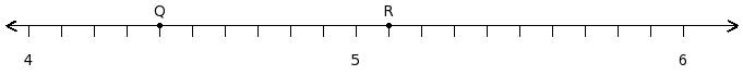 Find the sum of the rational numbers at the points labelled with letters Q and R