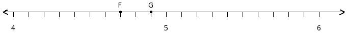 Find the difference of the rational numbers at the points labelled with letters F and G