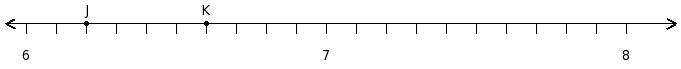 Find the product of the rational numbers at the points labelled with letters J and K
