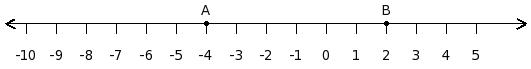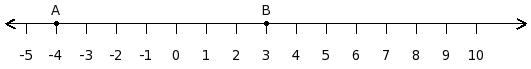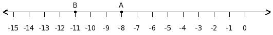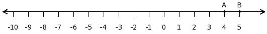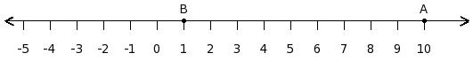 Find the difference between the values of numbers at point A and B