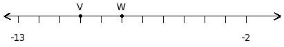 Find the sum of the two numbers at the points labelled with letters V and W