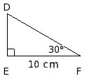 In the given figure, △DEF is right angled at E. If EF = 10 cm and ∠F = 30°, find DE and DF