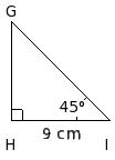 In the given figure, △GHI is right angled at H. If HI = 9 cm and ∠I = 45°, find GH and GI