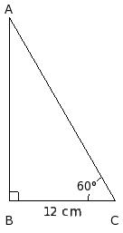 In the given figure, △ABC is right angled at B. If BC = 12 cm and ∠C = 60°, find AB and AC