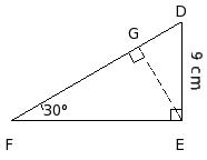 In the given figure, △DFE is right angled at E. If DE = 9 cm and ∠F = 30°, find DF