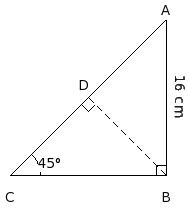 In the given figure, △ACB is right angled at B. If AB = 16 cm and ∠C = 45°, find AC