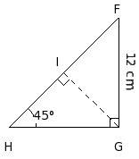 In the given figure, △FHG is right angled at G. If FG = 12 cm and ∠H = 45°, find FI