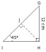 In the given figure, △GIH is right angled at H. If GH = 12 cm and ∠I = 45°, find IJ