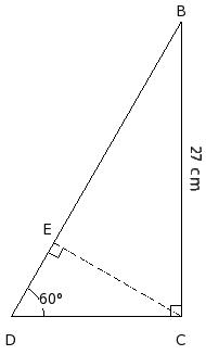 In the given figure, △BDC is right angled at C. If BC = 27 cm and ∠D = 60°, find BD