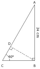 In the given figure, △ACB is right angled at B. If AB = 24 cm and ∠C = 60°, find BC