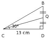 In the given figure, △BCD is a right angle triangle with ∠D = 90° and CD = 13 cm. Q is the mid-point of BD. Find QD