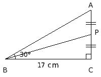 In the given figure, △ABC is a right angle triangle with ∠C = 90° and BC = 17 cm. P is the mid-point of AC. Find the length of the altitude from C to AB.
