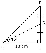 In the given figure, △BCD is a right angle triangle with ∠D = 90° and CD = 13 cm. S is the mid-point of BD. Find SD