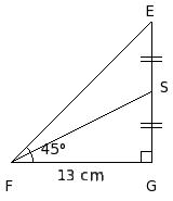 In the given figure, △EFG is a right angle triangle with ∠G = 90° and FG = 13 cm. S is the mid-point of EG. Find the length of the altitude from G to EF.