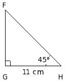 In the given figure, △FGH is right angled at G. If GH = 11 cm and ∠H = 45°, find FG and FH