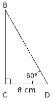 In the given figure, △BCD is right angled at C. If CD = 8 cm and ∠D = 60°, find BC and BD