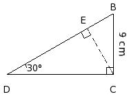 In the given figure, △BDC is right angled at C. If BC = 9 cm and ∠D = 30°, find BE