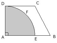 In the given figure , ABCD is a trapezium. A quarter circle AEFD is removed from the trapezium. If AD = CD = 10 and EB = 5.2 , find the area of the remaining portion