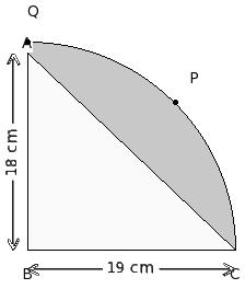 In the given figure, BC = 7.00 cm. Find the area of the shaded region