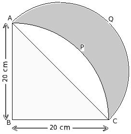 In the given figure, ABCD is a square with side 20.00 cm. Find the area of the shaded region