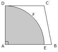 In the given figure , ABCD is a trapezium. A quarter circle AEFD is removed from the trapezium. If AD = CD = 13 and EB = 2.5 , find the area of the remaining portion