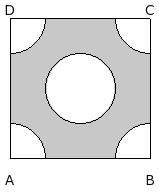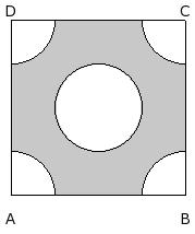 In the given figure, ABCD is a square of side 14.00 cm . At the centre there is a circle with radius 3.50 cm and the same circle quadrants are at the four corners. Find the area of the shaded region.