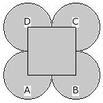 In the given figure, ABCD is a square of side 7.00 cm and A, B, C, D are centres of circles which touch externally in pairs. Find the area of the shaded region