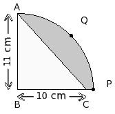 In the given figure, BC = 6.00 cm. Find the area of the shaded region