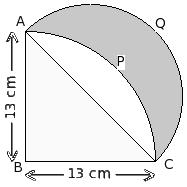 In the given figure, ABCD is a square with side 14.00 cm. Find the area of the shaded region