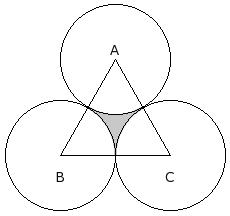 In the given figure △ABC is an equilateral triangle whose area is 52.39 sq.cm. With each vertex of the triangle as center, a circle is drawn with radius equal to half the length of the side of the triangle . Find the area of the shaded region