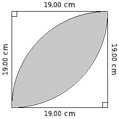 Find the area of the shaded region in the given figure common between the two quadrants of circles of radius 19.00 cm each