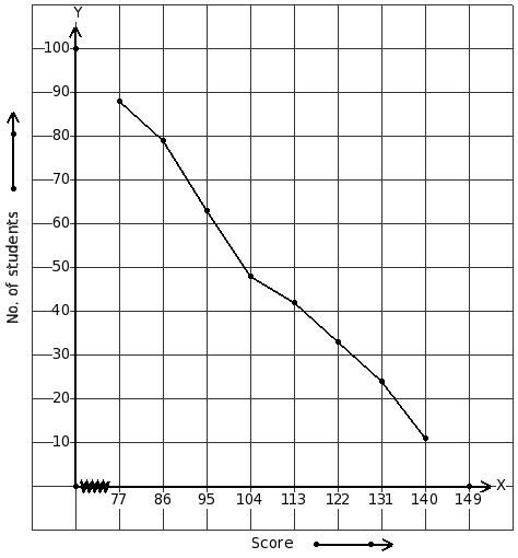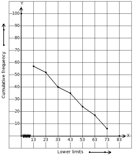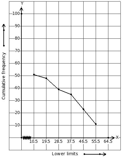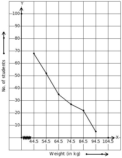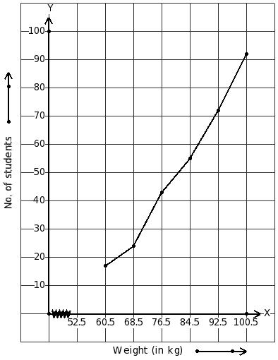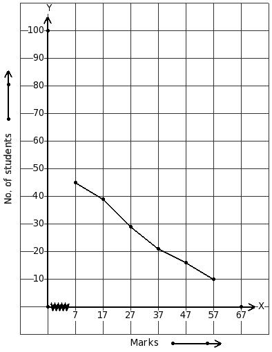 The marks obtained by 48 students of a class in an examination is given below. Identify the frequency distribution table for the given less than ogive.