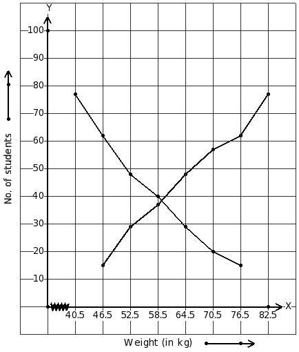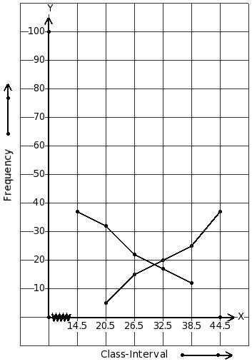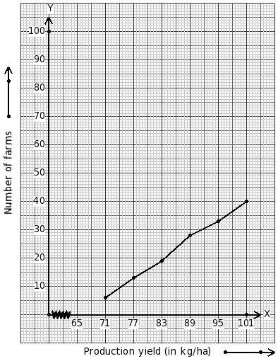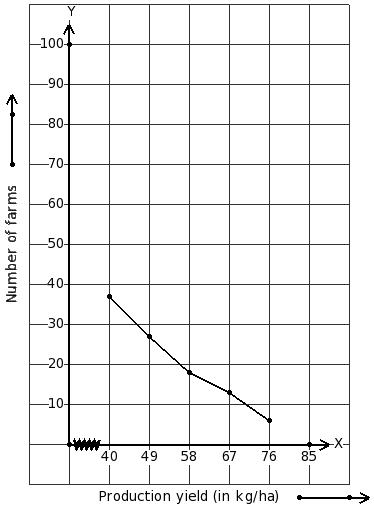 The production yield in kg per hectare of wheat of 40 farms of a village is given below. Identify the frequency distribution table for the given less than ogive.