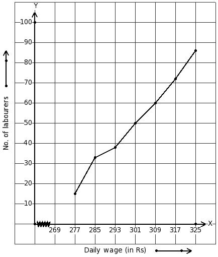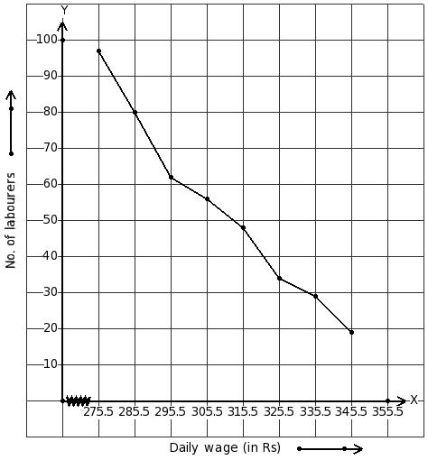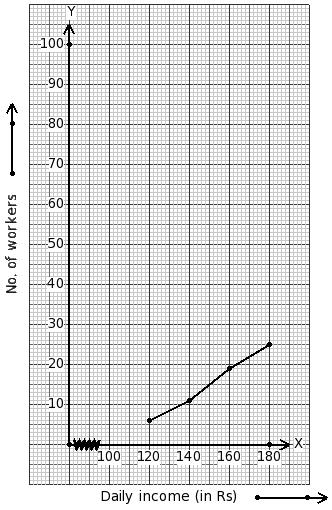 The daily income of 25 workers of a factory is given below. Identify the frequency distribution table for the given less than ogive.