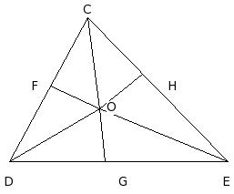 In the given figure, CDE is a triangle and 'O' is a point inside △CDE. The angular bisector of ∠DOC, ∠EOD & ∠COE meet CD, DE & EC at F, G & H respectively . Then