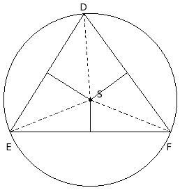 In the given triangle S is the circumcentre. If SD = 12.40 cm, find the circumference of the circumcircle