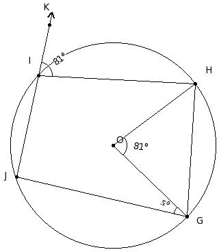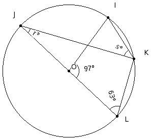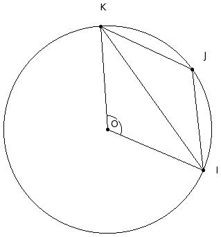 O is the centre of the circle and OK = JK. Find reflex ∠KOI