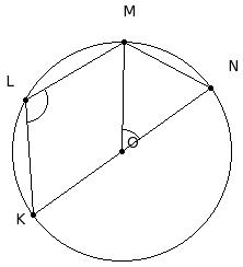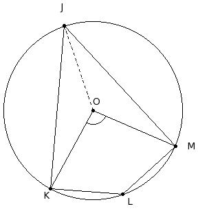 O is the centre of the circle. If ∠KOM = 95°, find ∠J