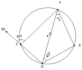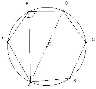 In the given figure, a hexagon is inscribed in a circle with centre O. Given AB = BC = CD and ∠DEF = 125.73°. Find ∠FAB
