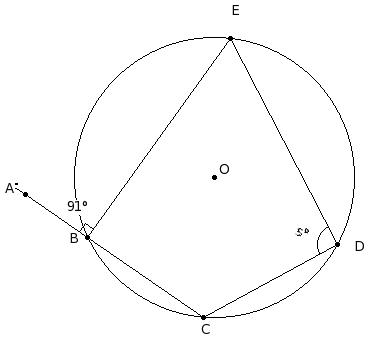 In the given figure, a pentagon is inscribed in a circle with centre O. Given AB = BC = CD , ∠BCD = 109° and ∠EAB = 114°. Find ∠CDE