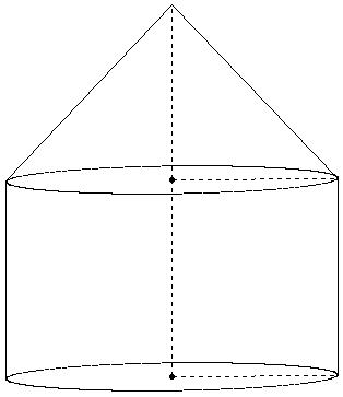 A wooden toy rocket is in the shape of a cone mounted on a cylinder. The height of the conical part is 9.00 cm , while the height of the cylindrical part is 18.00 cm. The base of the conical portion has a diameter of 8.00 cm while the base diameter of the cylindrical portion is 4.00 cm. If the conical portion is painted with gray and cylindrical portion with black, find the area of the rocket painted with each of these colors |