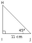 In the given figure, △HIJ is right angled at I. If IJ = 11 cm and ∠J = 45°, find HI and HJ