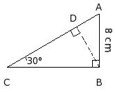 In the given figure, △ACB is right angled at B. If AB = 8 cm and ∠C = 30°, find CD