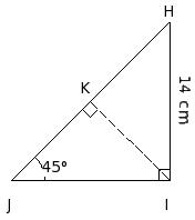 In the given figure, △HJI is right angled at I. If HI = 14 cm and ∠J = 45°, find HJ
