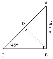 In the given figure, △ACB is right angled at B. If AB = 15 cm and ∠C = 45°, find AD