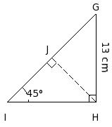 In the given figure, △GIH is right angled at H. If GH = 13 cm and ∠I = 45°, find IJ