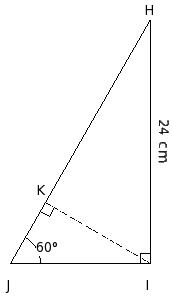 In the given figure, △HJI is right angled at I. If HI = 24 cm and ∠J = 60°, find HJ