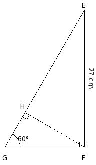 In the given figure, △EGF is right angled at F. If EF = 27 cm and ∠G = 60°, find GH