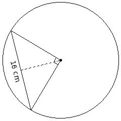 A chord of 16 cm subtends an angle of 90° at the centre. Calculate its shortest distance from the centre