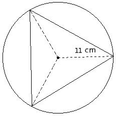 An equilateral triangle is inscribed in a circle of radius 11 cm. Find the length of its sides.